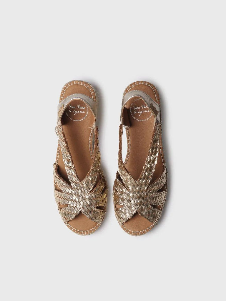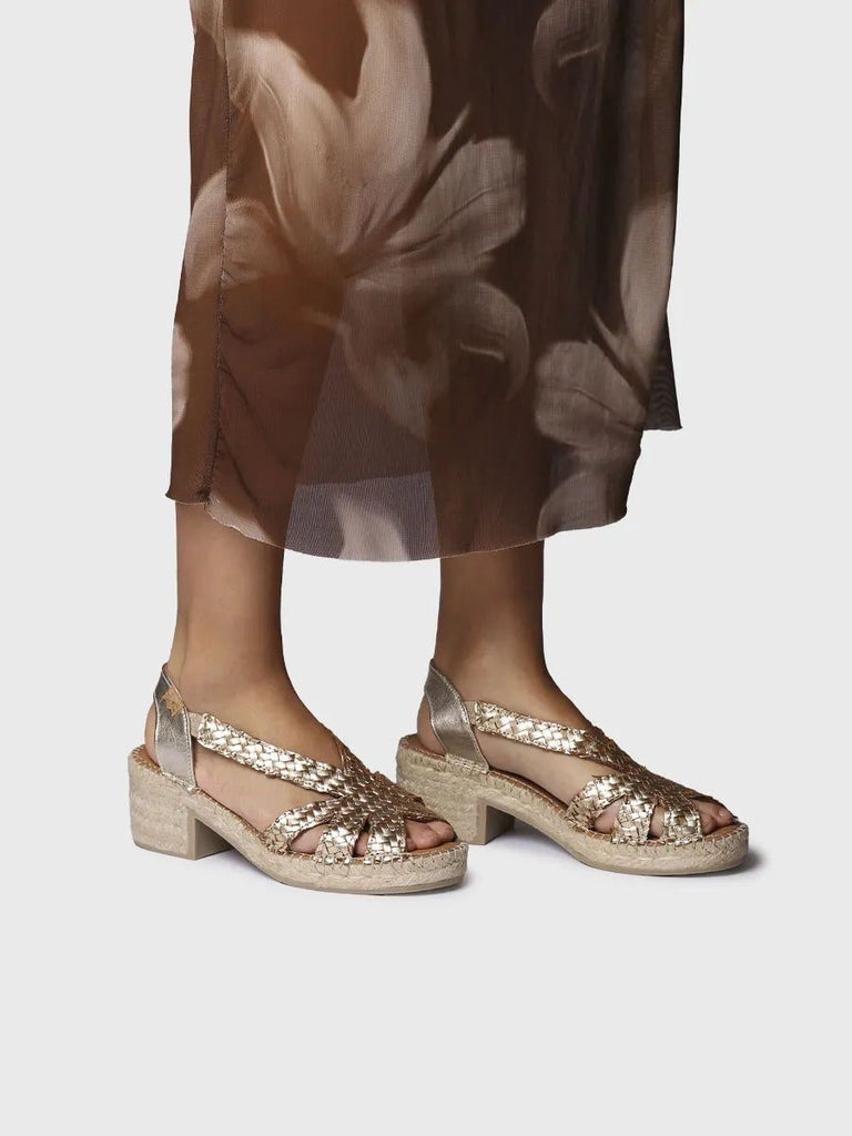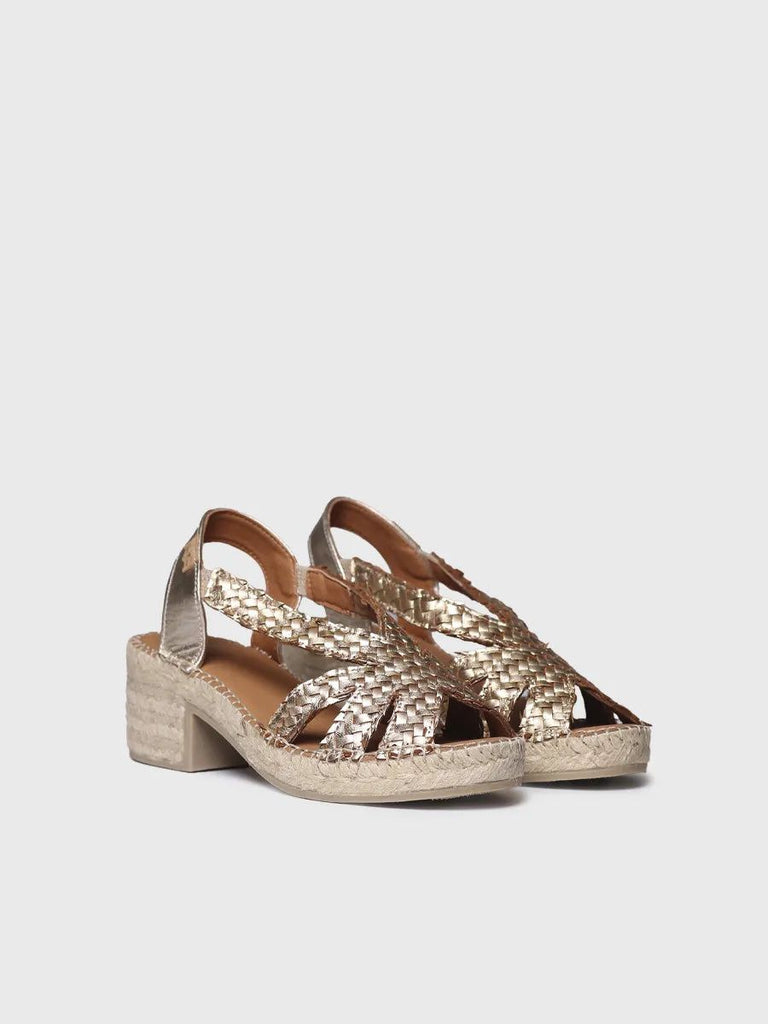DORIS. Esta alpargata de mujer con tacón bajo combina artesanía y estilo contemporáneo. Está elaborada en tejido trenzado metalizado, que aporta un brillo sutil.