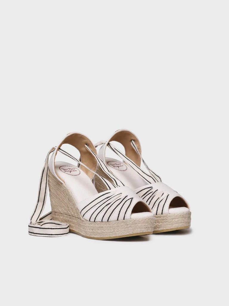PALS-CC es una alpargata de estilo tradicional con cuña alta elaborada en yute. Presenta un diseño con cintas cruzadas en la parte delantera y cintas para atar al tobillo. Tiene una altura total de 11 cm, de los cuales 8 cm pertenecen al tacón y 3 cm a la plataforma. Cuenta con una cómoda plantilla acolchada y una base de goma antideslizante.